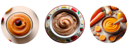 – Single-ingredient purees: Sweet potato, avocado, apple sauce, carrots, peas
