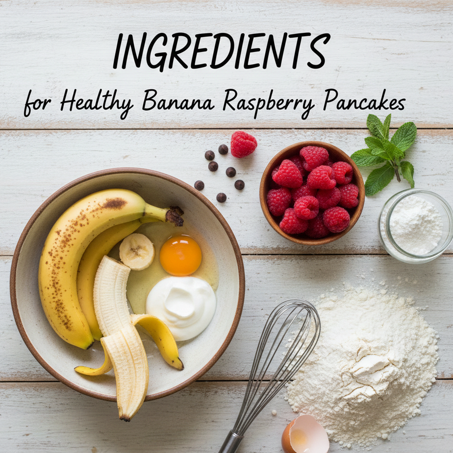 To make these healthy banana raspberry pancakes, gather the following simple ingredients: