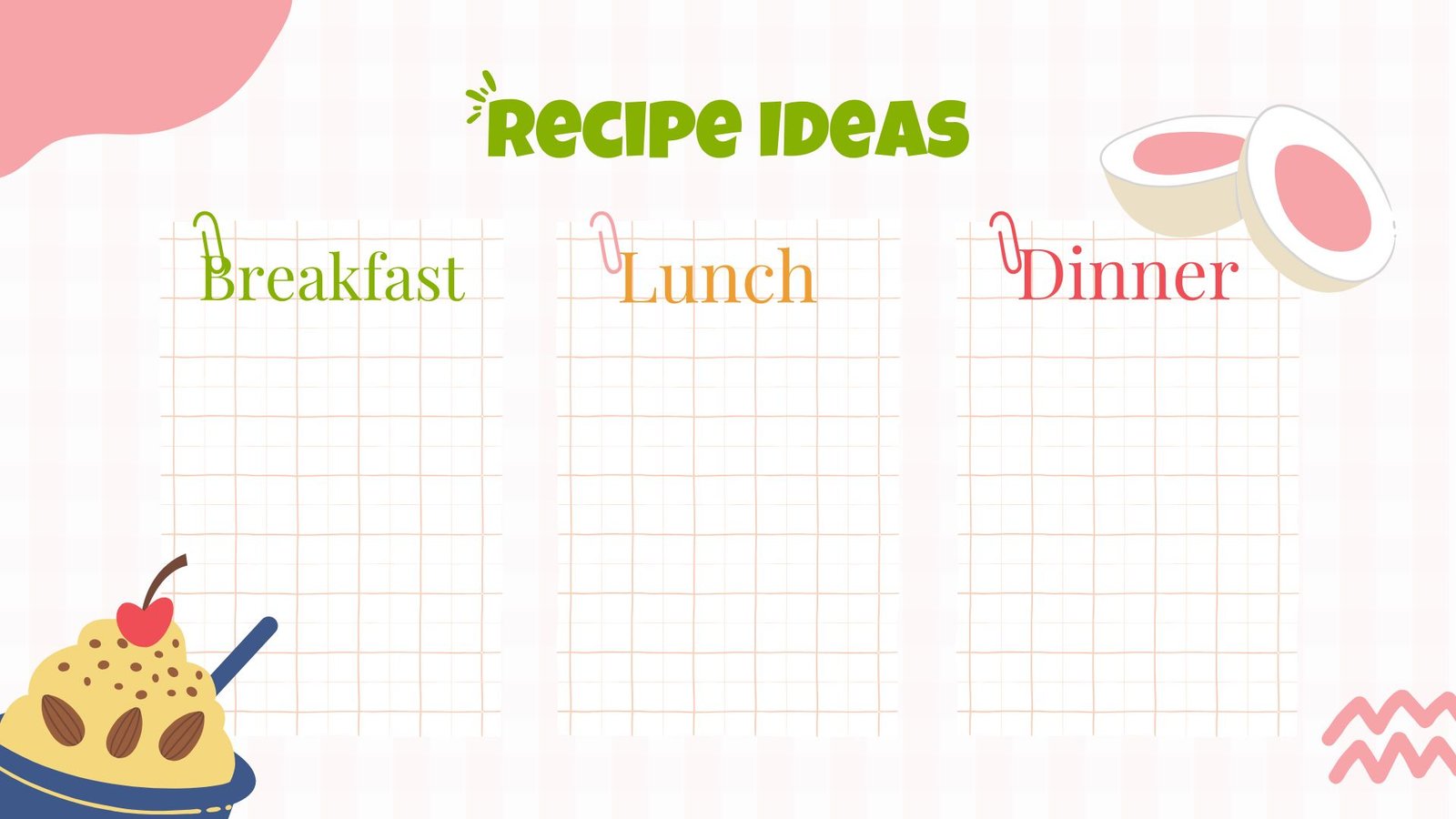 Daily, Weekly & Monthly Planners: Structured layouts to organize proteins, grains, fruits, vegetables, and dairy.